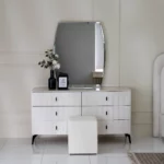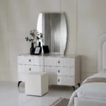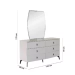 Bring luxury and functionality to your bedroom with the Raffles Dresser Mirror with Stool, a stunning combination of timeless design and modern practicality. Crafted from painted MDF material with a sleek high gloss finish, this dresser set radiates sophistication and durability.