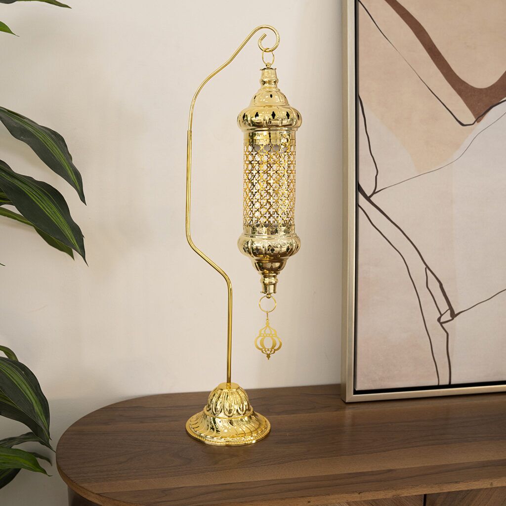 Meticulously designed and adorned with a luxurious gold-plated finish, the Ramadan Hanging Lantern becomes more than just a decoration; it becomes a multi-sensory experience.