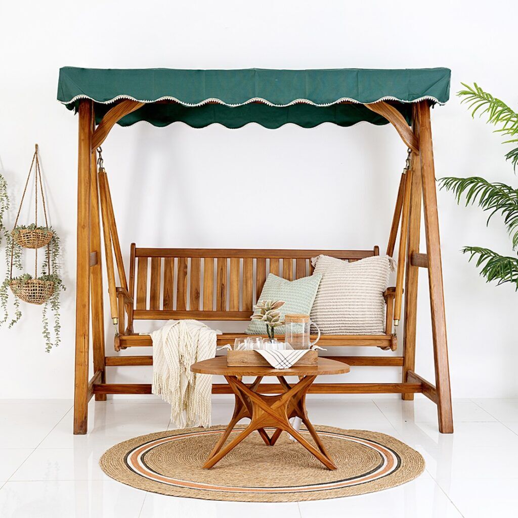The swing bench is designed for versatile outdoor use, providing a comfortable spot for relaxation, reading, or enjoying the outdoors with friends and family.