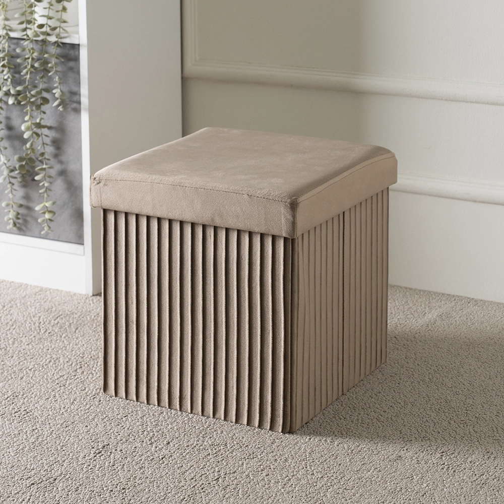 A practical and versatile piece, this foldable ottoman offers hidden storage to keep your space organized while doubling as extra seating or a footrest. Its compact, foldable design makes it easy to use and store, blending functionality with style.