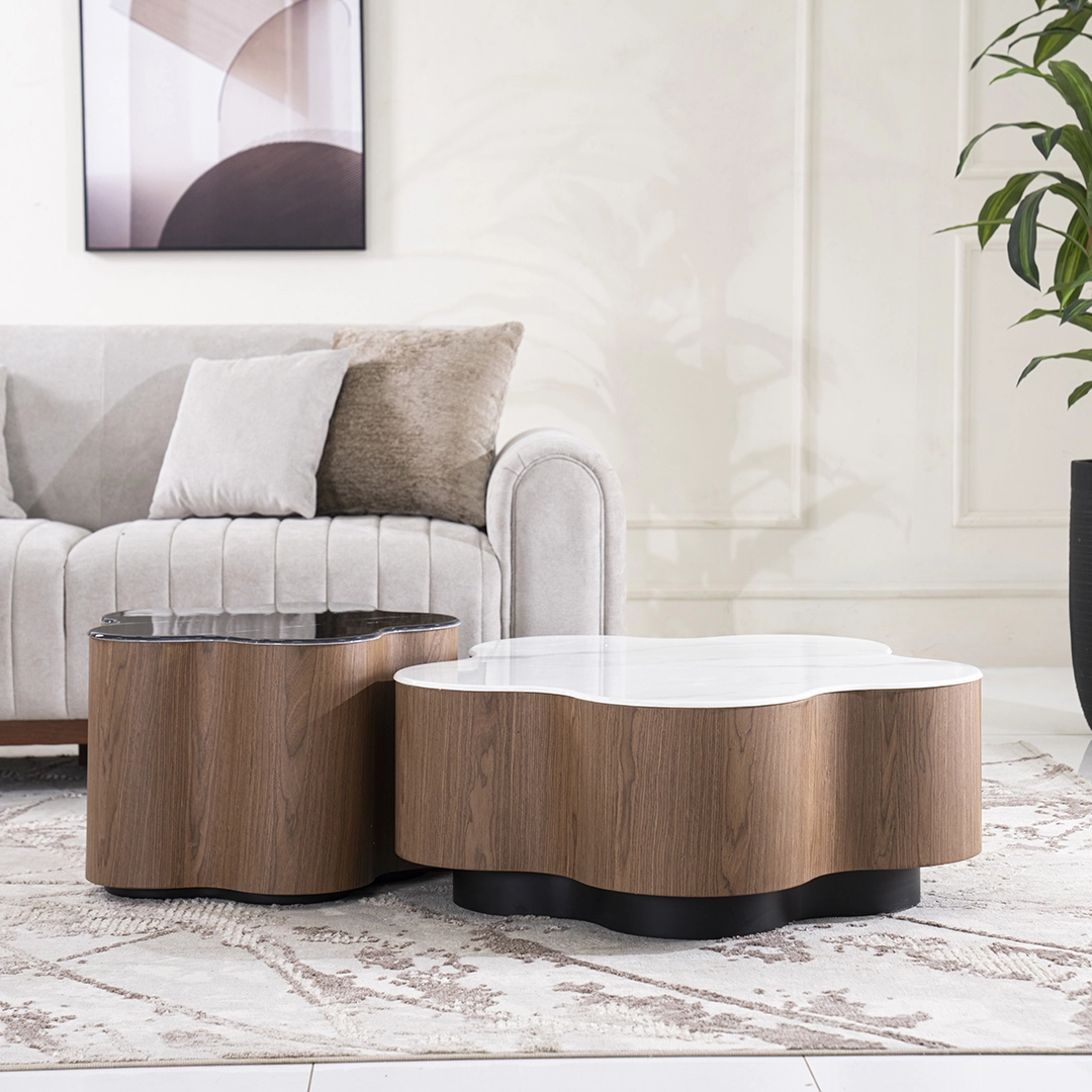 Elegant 2-piece set offers a main coffee table plus a companion side or nested table — ideal for flexible living-space arrangements.