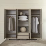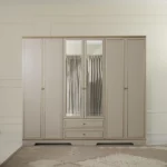 Riverina 6 Door Wardrobe in Grey and Oak offers ample storage with a modern, streamlined design. Featuring a rich wood finish paired with sleek grey panels, it brings both style and functionality to any bedroom.