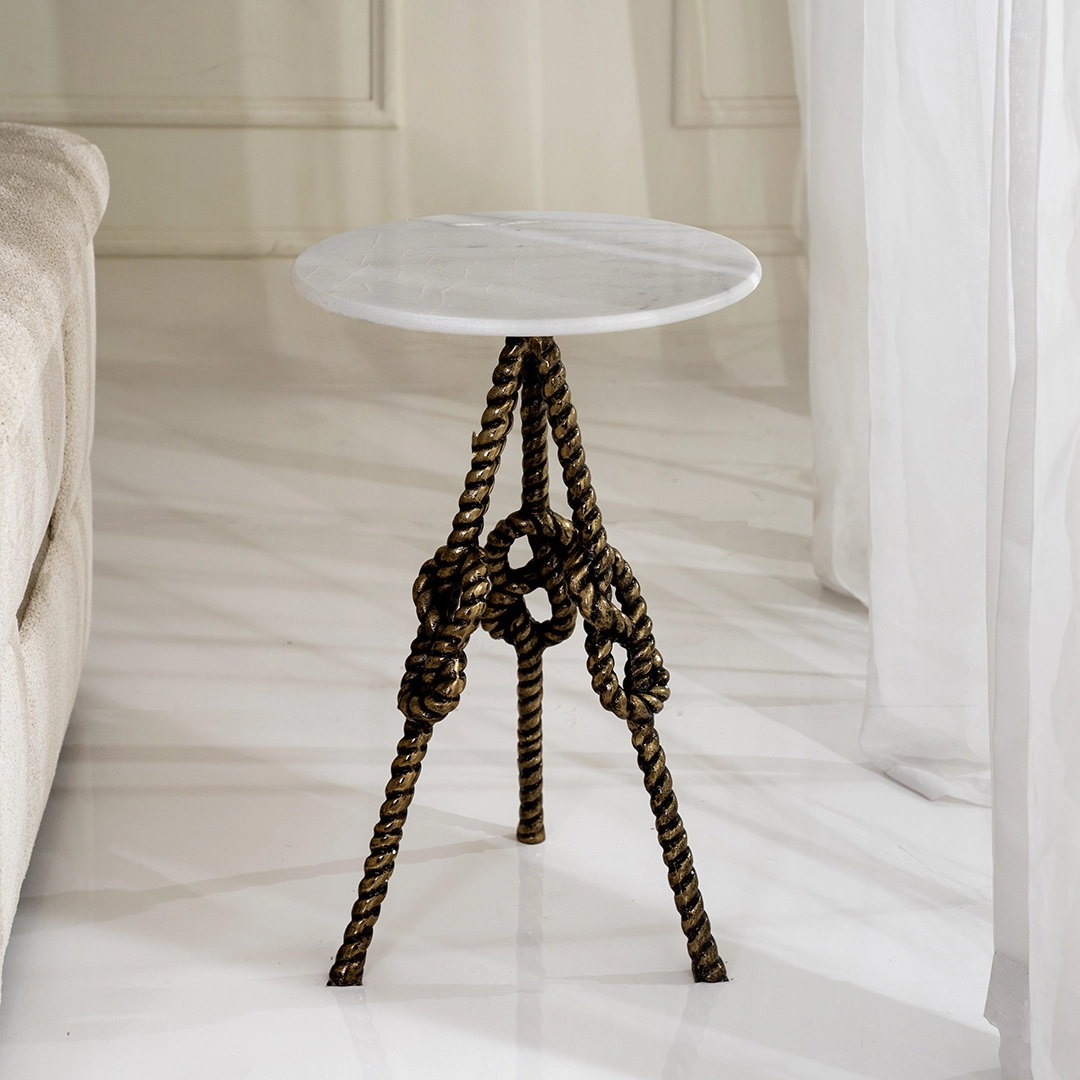 The Rope Accent Table with a Marble Top is a chic and modern piece that combines contemporary style with a touch of luxury.