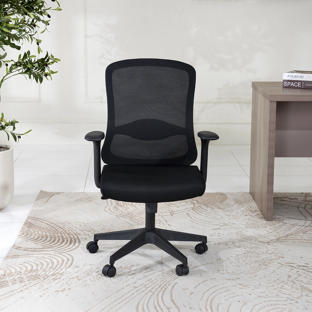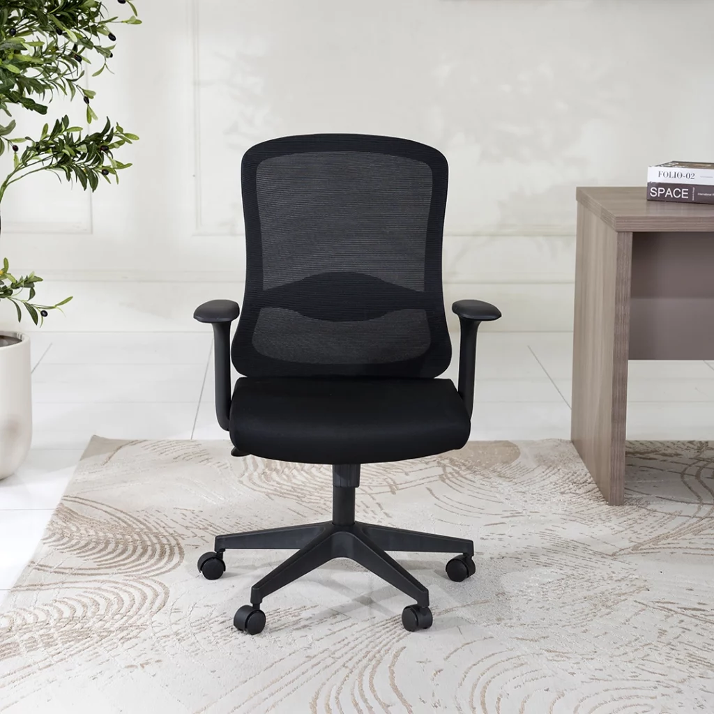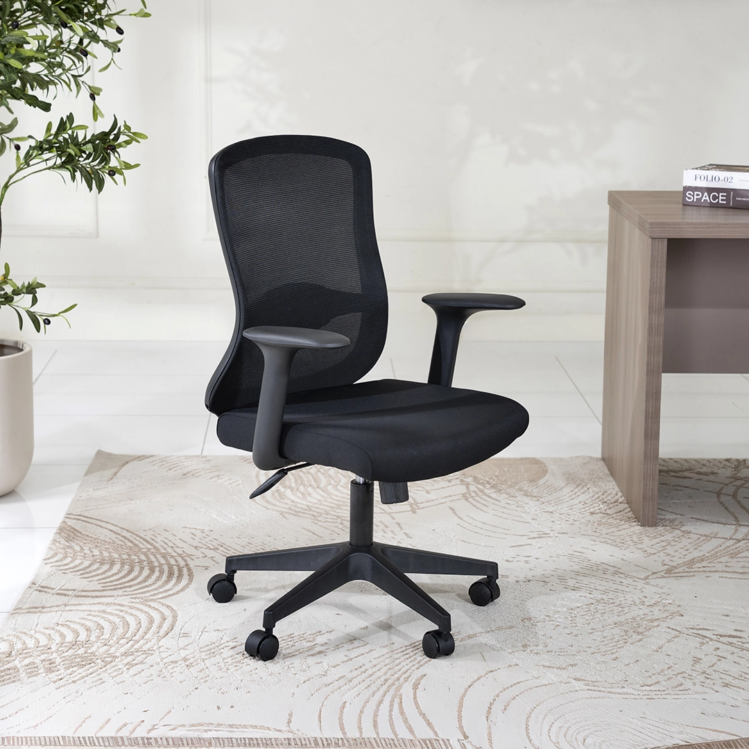 The Ruhian Visitor Chair in black offers a sleek, modern design with a comfortable padded seat and supportive backrest—ideal for office reception areas, meeting rooms, or home workspaces.