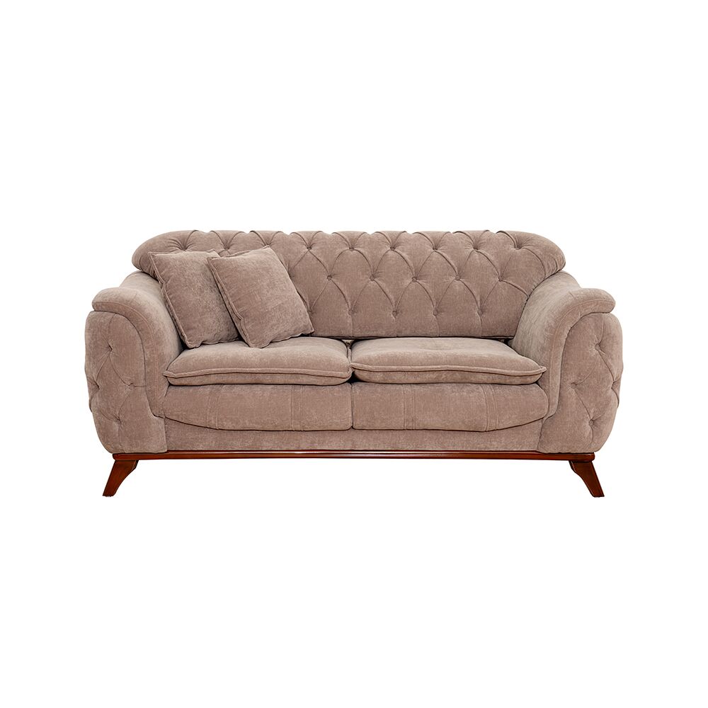 Upholstered in premium fabric, this two-seater sofa offers a plush seating experience that invites relaxation. Its solid wood legs provide robust support and add a classic, timeless element to the design.