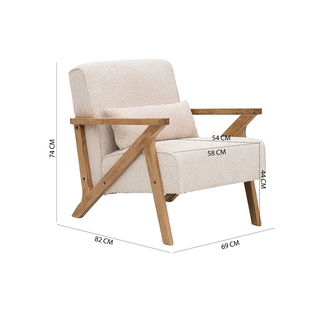 A stylish blend of comfort and charm, the Sarafina accent chair features a sleek silhouette upholstered in soft, durable fabric. Perfect for adding a touch of elegance to your living space while offering a cozy spot to relax.