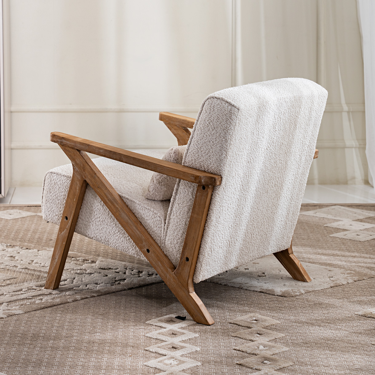 A stylish blend of comfort and charm, the Sarafina accent chair features a sleek silhouette upholstered in soft, durable fabric. Perfect for adding a touch of elegance to your living space while offering a cozy spot to relax.