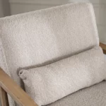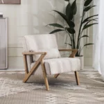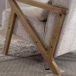 A stylish blend of comfort and charm, the Sarafina accent chair features a sleek silhouette upholstered in soft, durable fabric. Perfect for adding a touch of elegance to your living space while offering a cozy spot to relax.