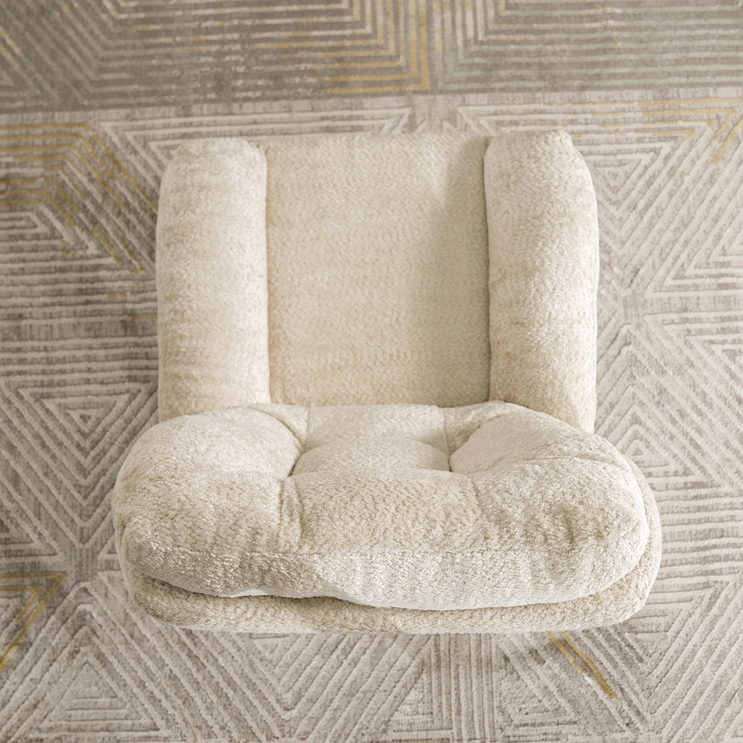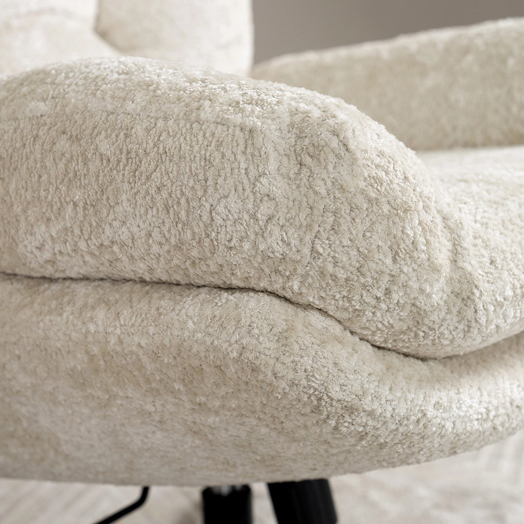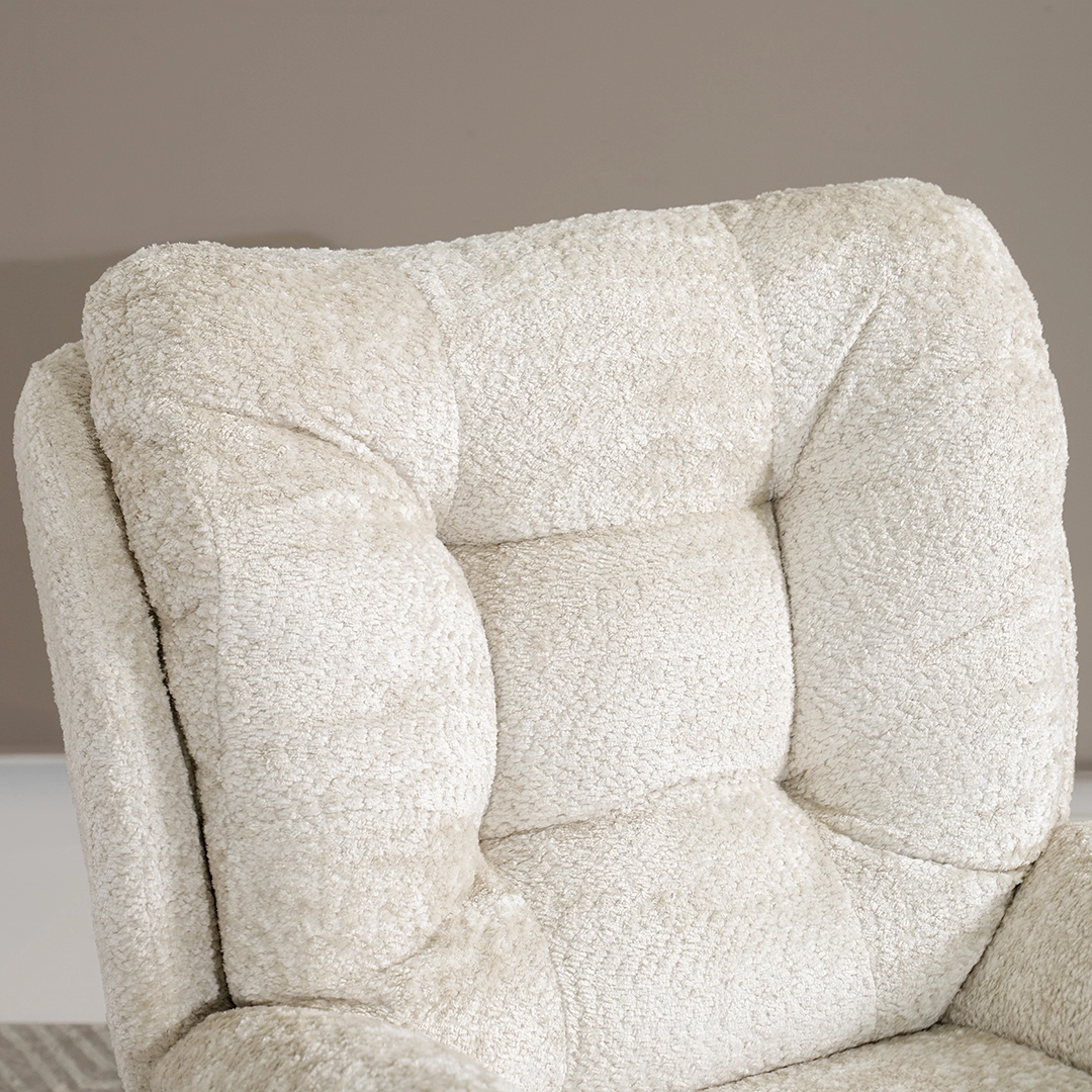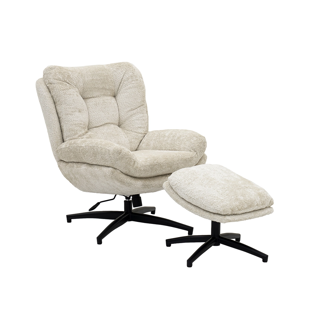 A cozy Scandi-style lounge chair with a matching footstool in off-white, crafted for comfort and effortless modern living.