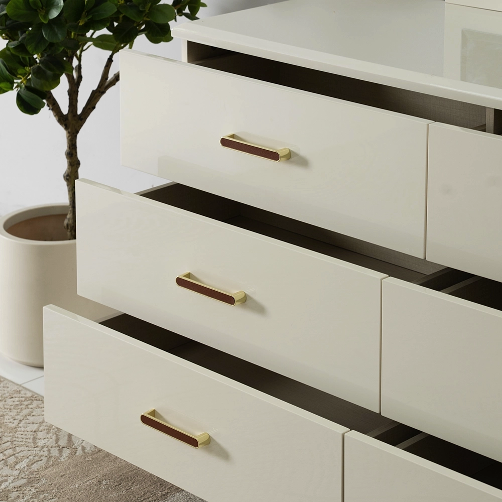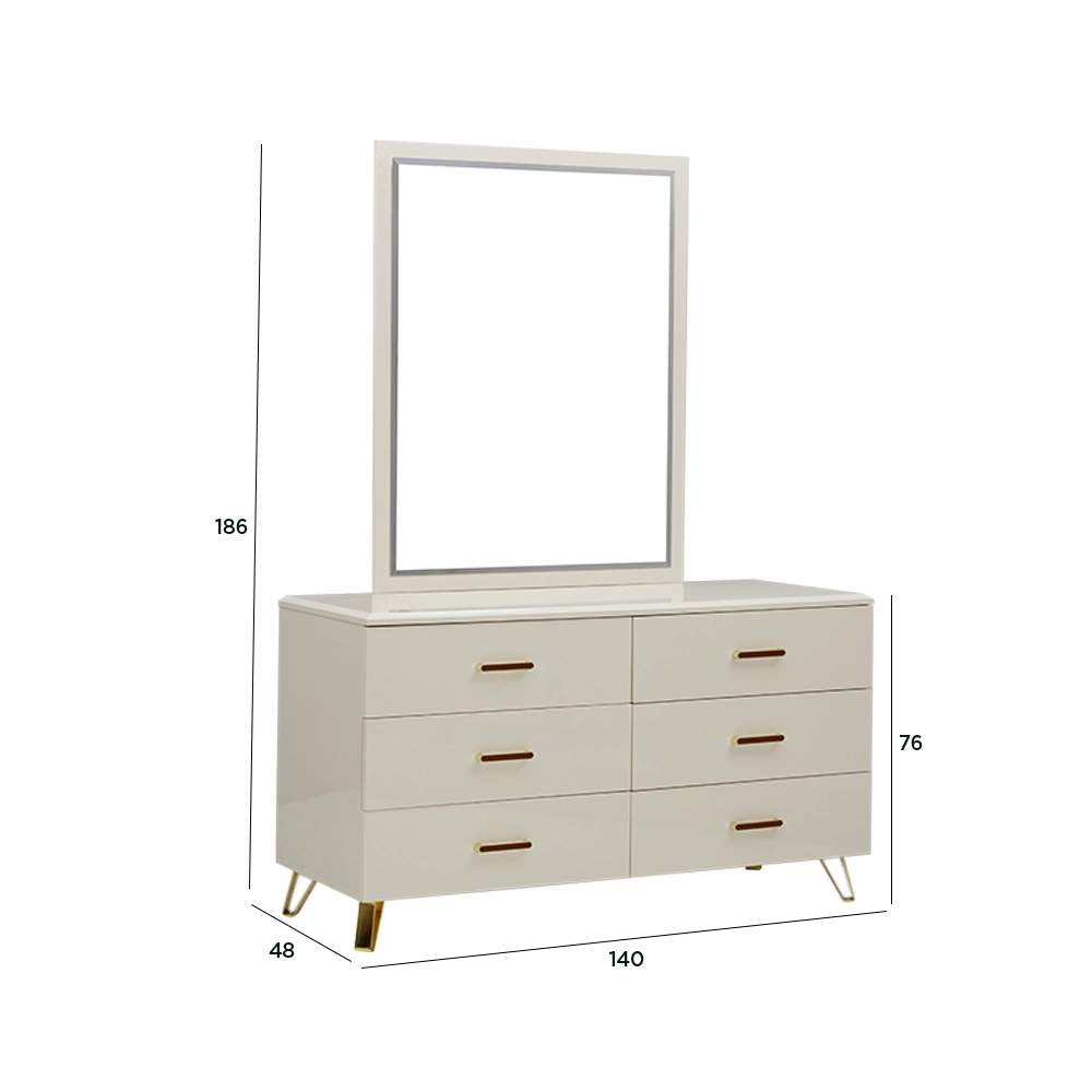 Bring luxury and functionality to your bedroom with the Senna Dresser Mirror with Stool, a stunning combination of timeless design and modern practicality. Crafted from painted MDF material with a sleek high gloss finish, this dresser set radiates sophistication and durability.