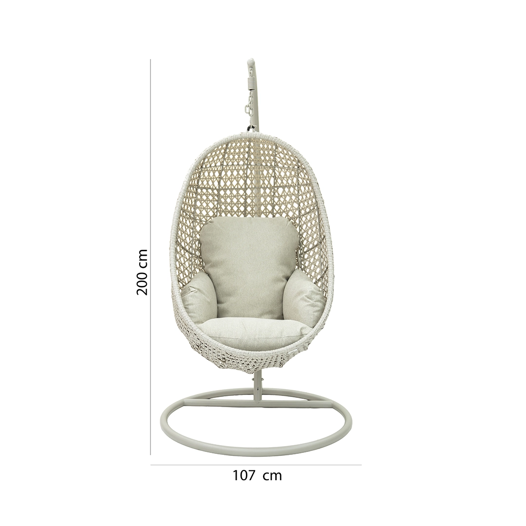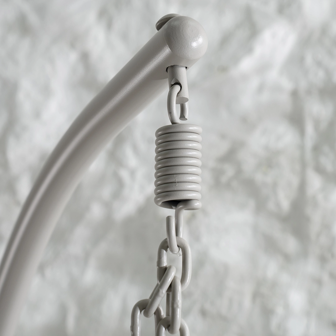 The Sereno swinging chair in sand brings serene comfort and timeless charm—crafted for effortless relaxation with a soft, soothing sway.