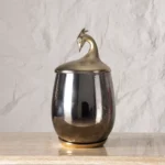 Introduce sophisticated style and functional elegance to your interior with the Serenya Trinket Jar in rich gold and bronze tones. Combining decorative appeal with generous size, this luxurious jar brings a statement piece to living rooms, entryways, dining tables, or shelves.