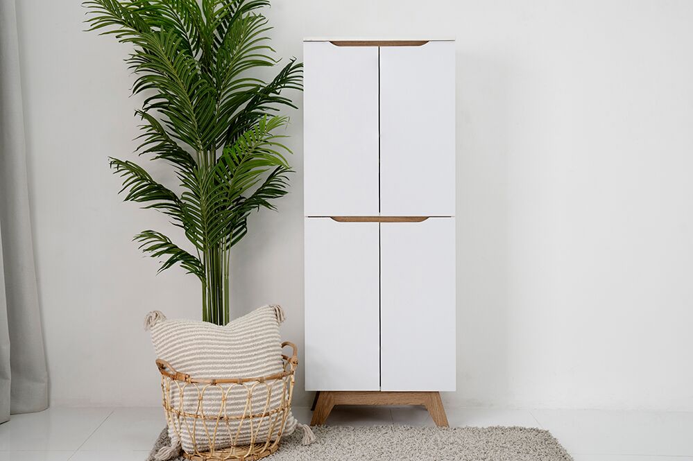 Equipped with particle board legs for added stability, this cabinet is as sturdy as it is stylish. Say goodbye to cluttered entryways and hello to organized bliss with the Simona Shoe Cabinet, a statement piece that elevates both form and function in your home.