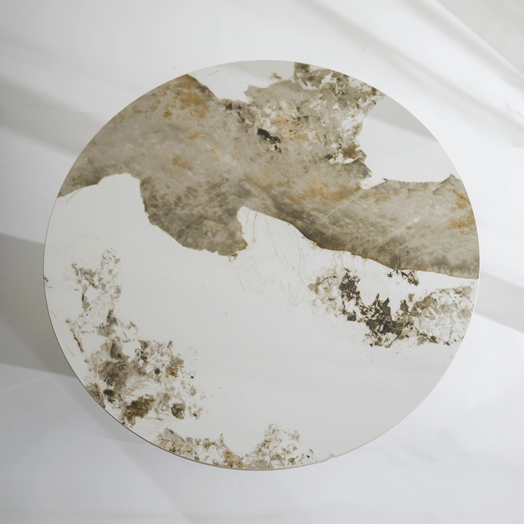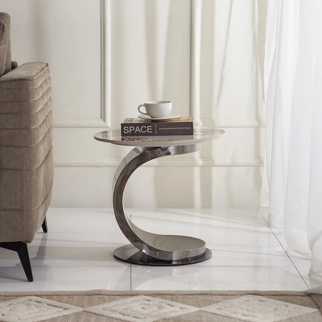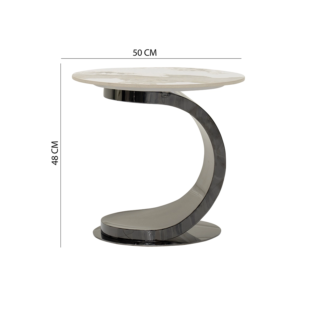 The Sindel End Table is a stunning blend of elegance and modern design. It features a synthetic snow-white marble top that exudes a clean, luxurious aesthetic.