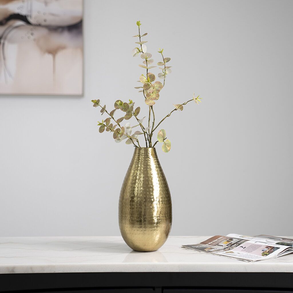 Sleek and durable, the Siv metal gold Vase adds a touch of elegance to any space.
