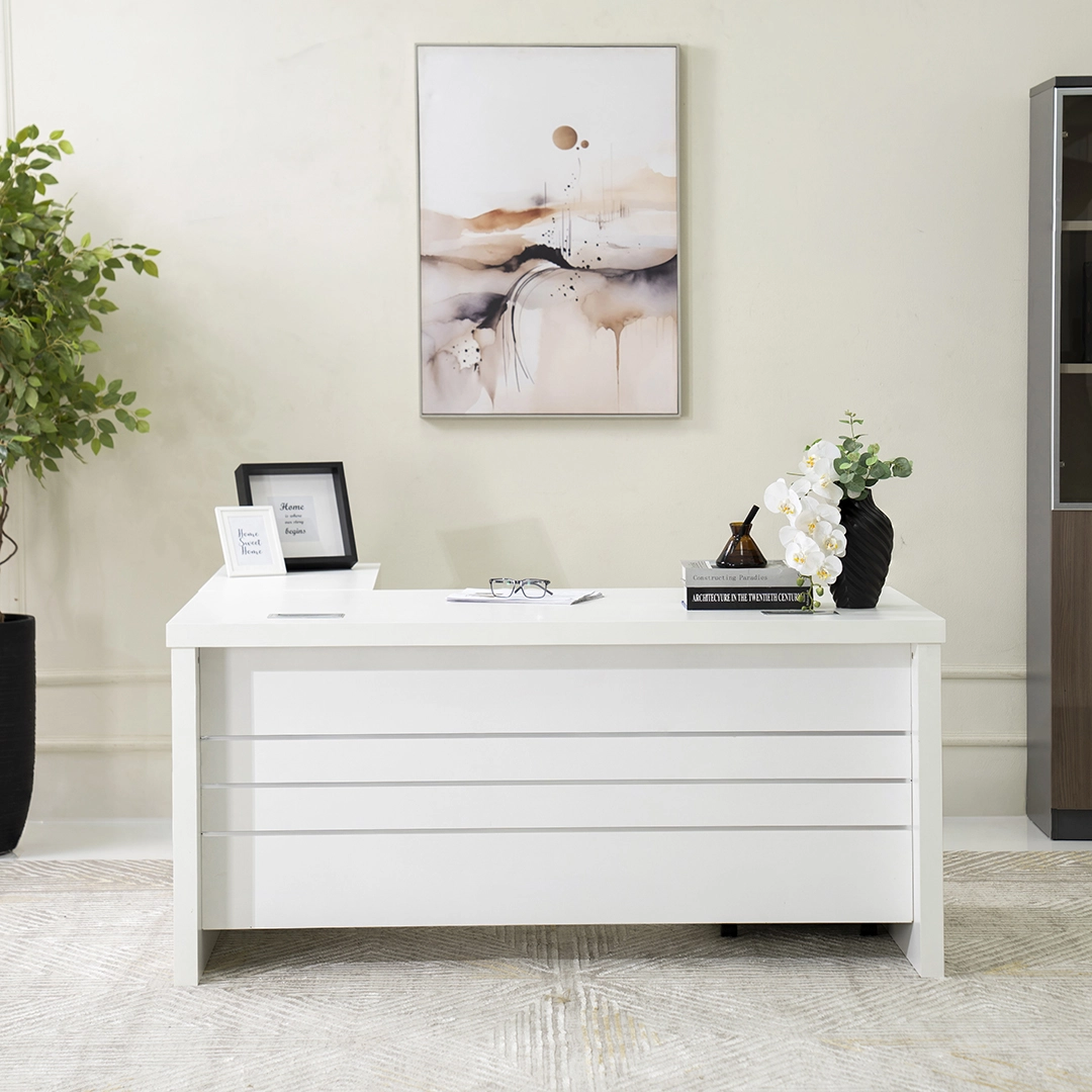 This study table combines modern simplicity with practical functionality. Its spacious work surface and sturdy construction make it ideal for studying, working, or organizing your essentials, fitting seamlessly into any home or office setting.