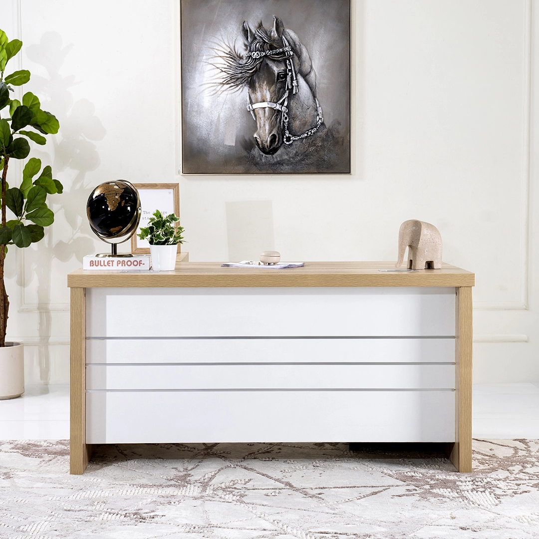 This study table combines modern simplicity with practical functionality. Its spacious work surface and sturdy construction make it ideal for studying, working, or organizing your essentials, fitting seamlessly into any home or office setting.