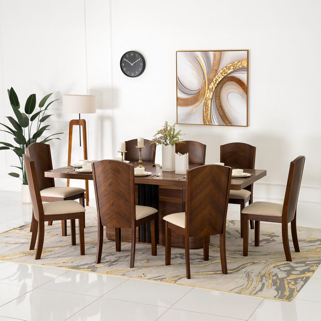 The table features a sleek matte finish, while the entire set is elegantly highlighted with a rich matte cocoa color, adding a warm and inviting tone to your dining space. The faux leather seating provides both comfort and easy maintenance, making it perfect for family gatherings or entertaining guests.