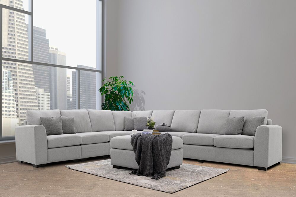 Discover the elegance of the Spencer Corner Sofa Set, complete with an ottoman, all luxuriously upholstered in premium fabric.