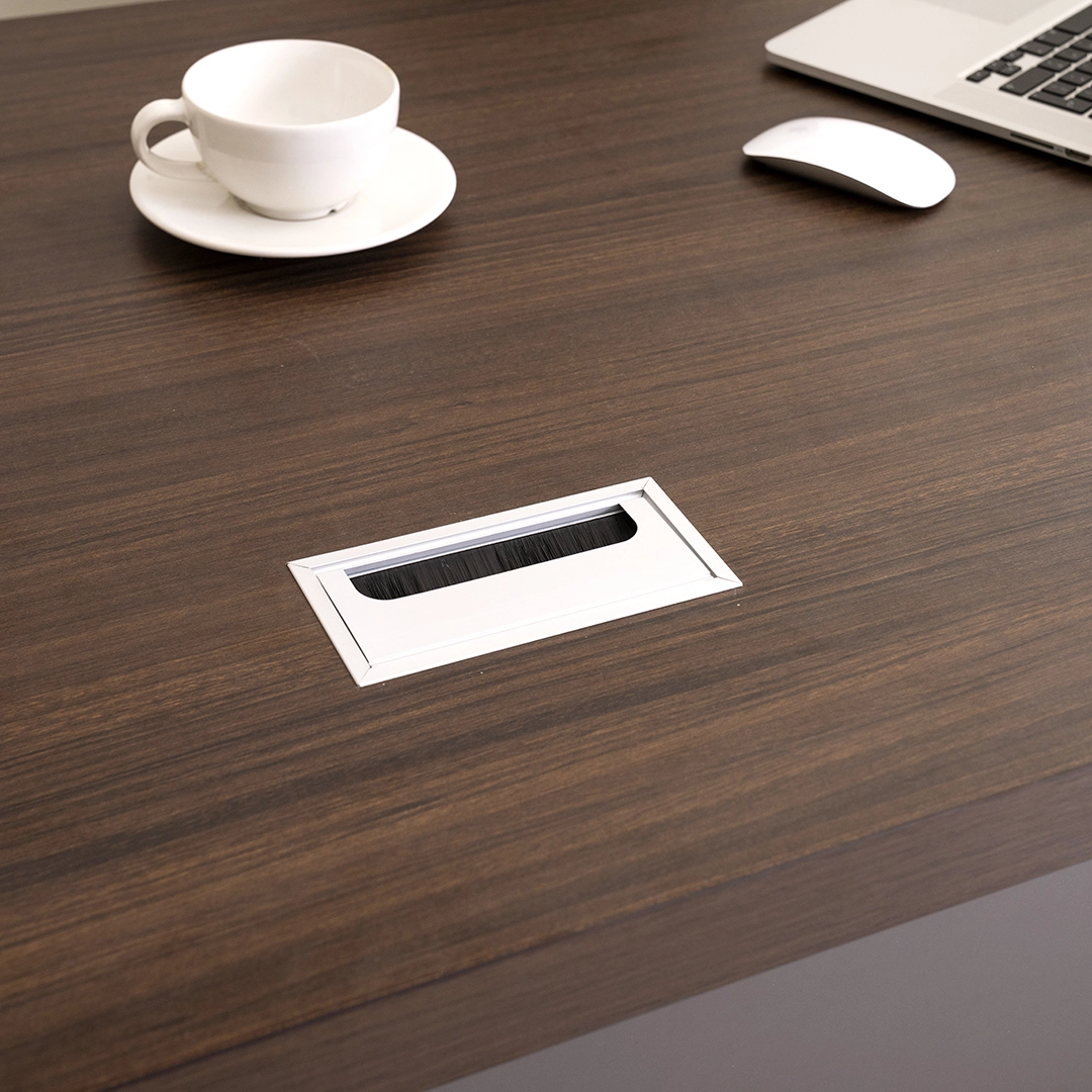 The melamine surface also provides a sleek, easy-to-clean finish that often mimics natural wood grains or solid color options, giving the table an elegant and polished look.
