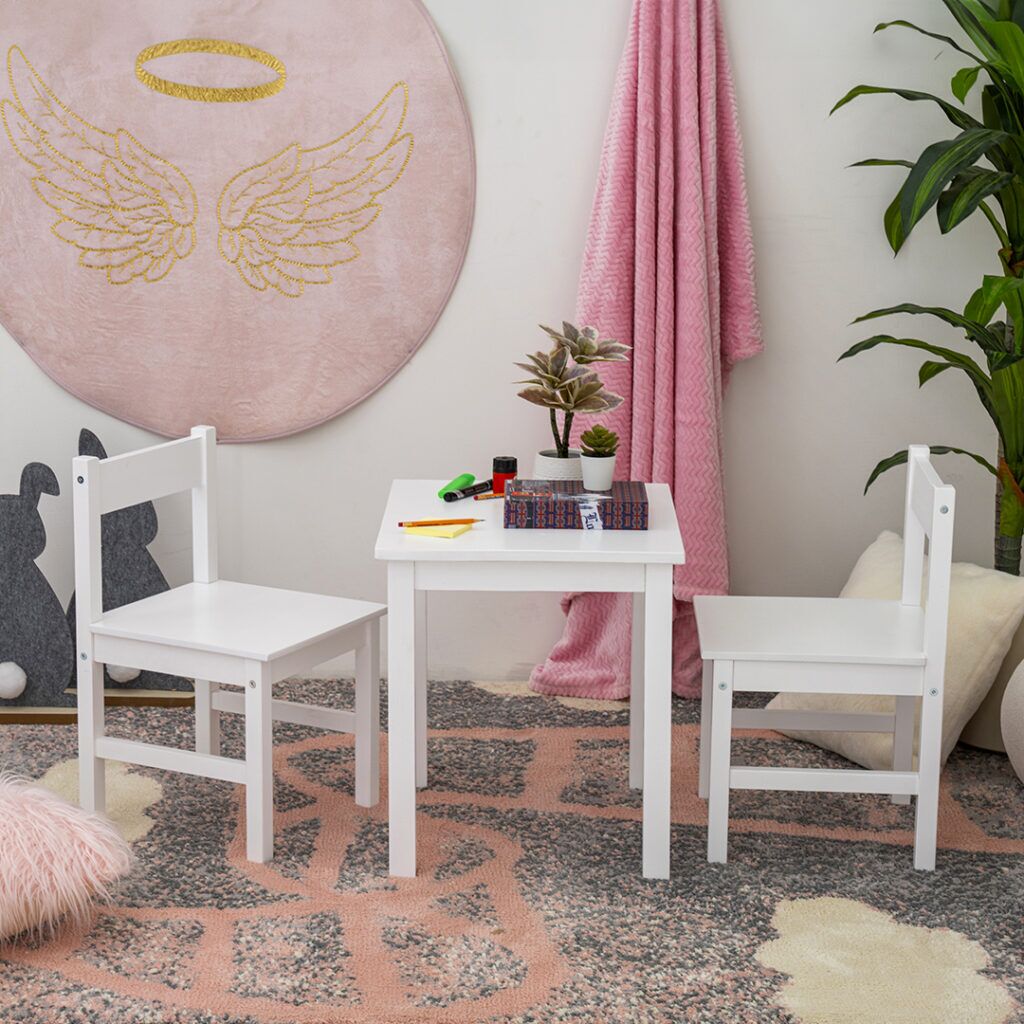 Designed with the comfort and convenience of young learners in mind, the desk set features two spacious seats, allowing siblings or friends to study and work together in comfort. The smooth pinewood construction ensures durability, while the pink finish adds a playful and inviting element to the room.