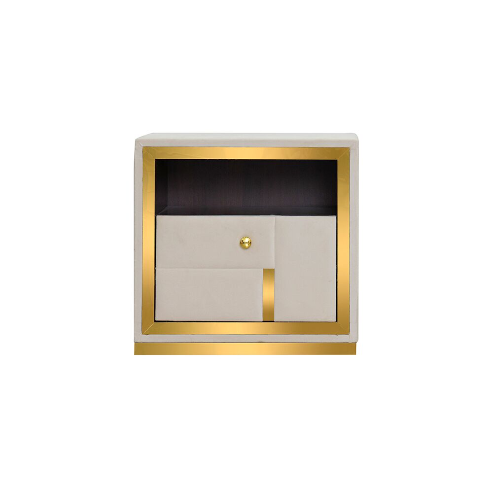 A sleek and functional side table designed to complement modern bedrooms. Made to order, it lets you choose the fabric and color to match your bedroom perfectly.