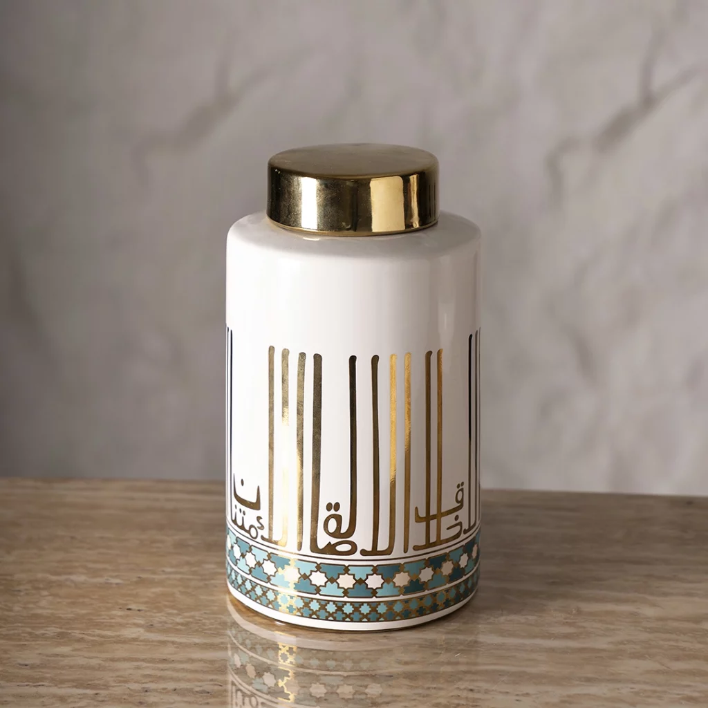 Celebrate togetherness with the Taliah Ceramic Jar White/Gold accent, a heartwarming piece that adds warmth and charm to any space.