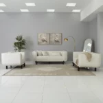 The Adeline Sofa Set offers both comfort and style, featuring premium fabric, plush cushioning, and a sturdy frame perfect for relaxation and social gatherings.