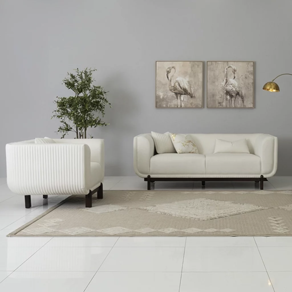 The Adeline Sofa Set offers both comfort and style, featuring premium fabric, plush cushioning, and a sturdy frame perfect for relaxation and social gatherings.