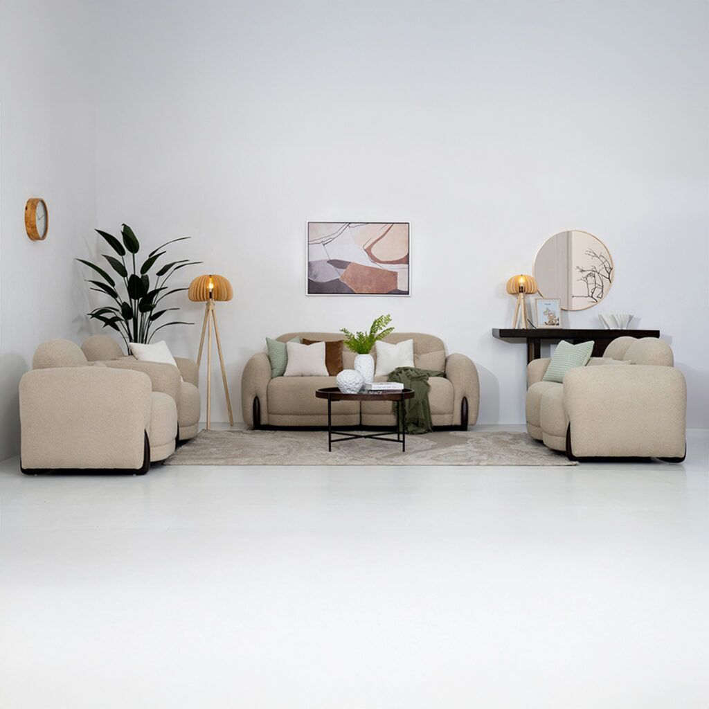 Upholstered in the finest fabric material, it features super-soft seat cushions that ensure a plush and inviting seating experience. Additionally, the Alvarez Sofa Set can be customized with your choice of fabric, allowing you to tailor it to perfectly match your décor and personal taste.