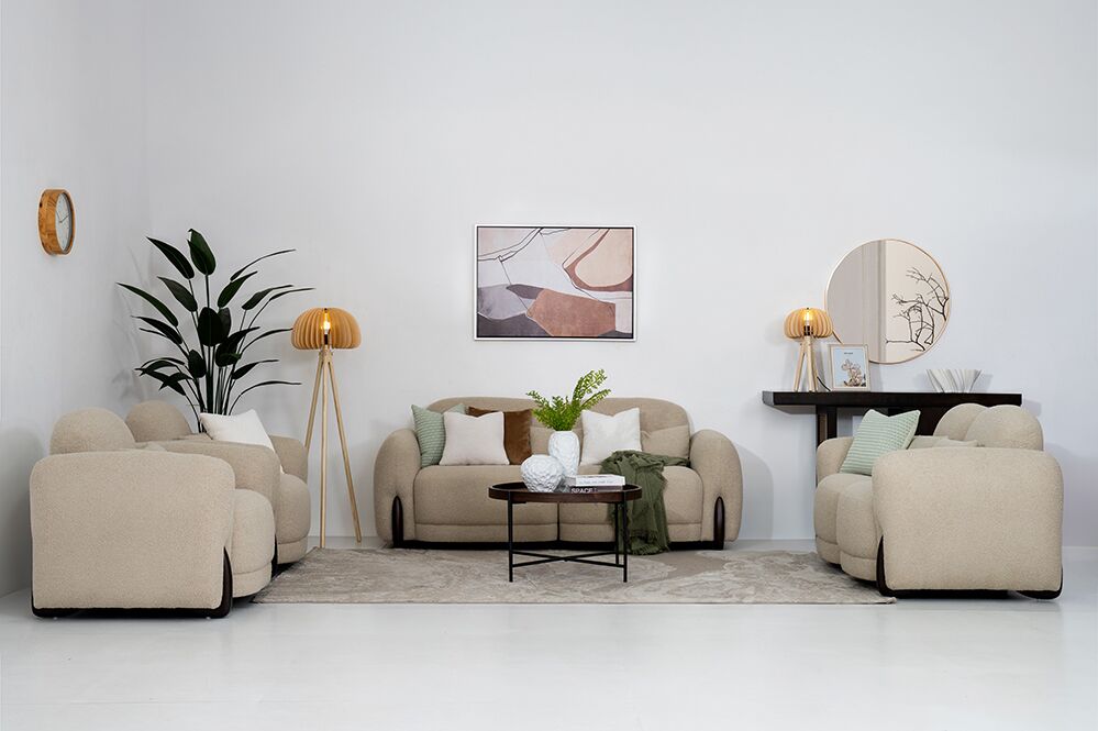Upholstered in the finest fabric material, it features super-soft seat cushions that ensure a plush and inviting seating experience. Additionally, the Alvarez Sofa Set can be customized with your choice of fabric, allowing you to tailor it to perfectly match your décor and personal taste.