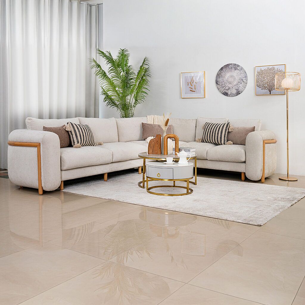 Introducing the exquisite Gaston Corner Sofa, constructed with a sturdy wooden leg type, the sofa’s foundation exudes durability and stability, and the loose seat type enhances the seating experience, providing a delightful balance of plushness and support.
