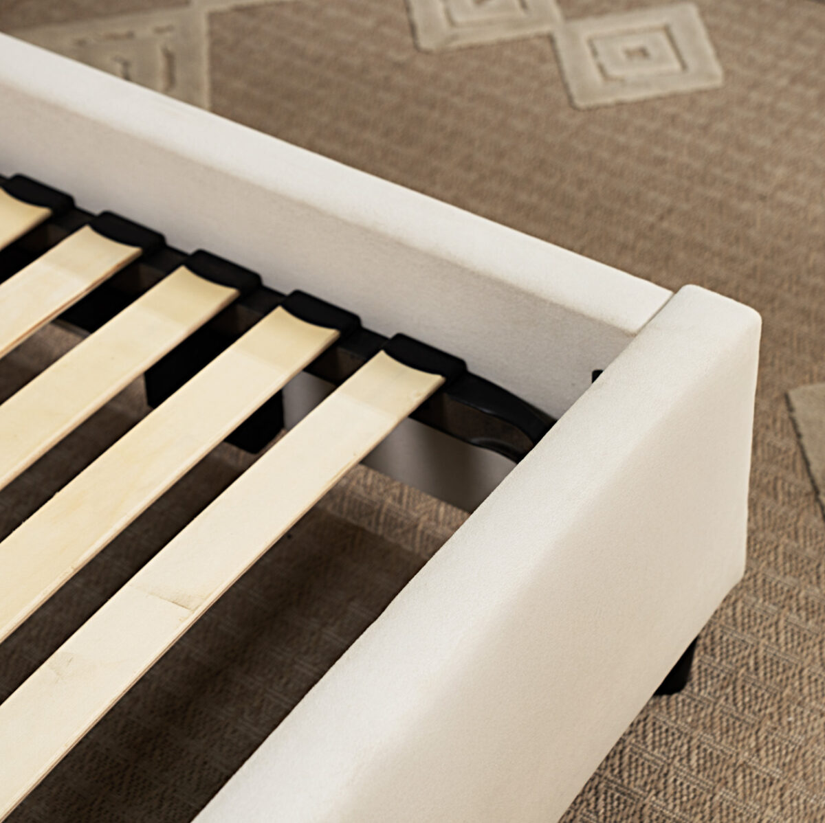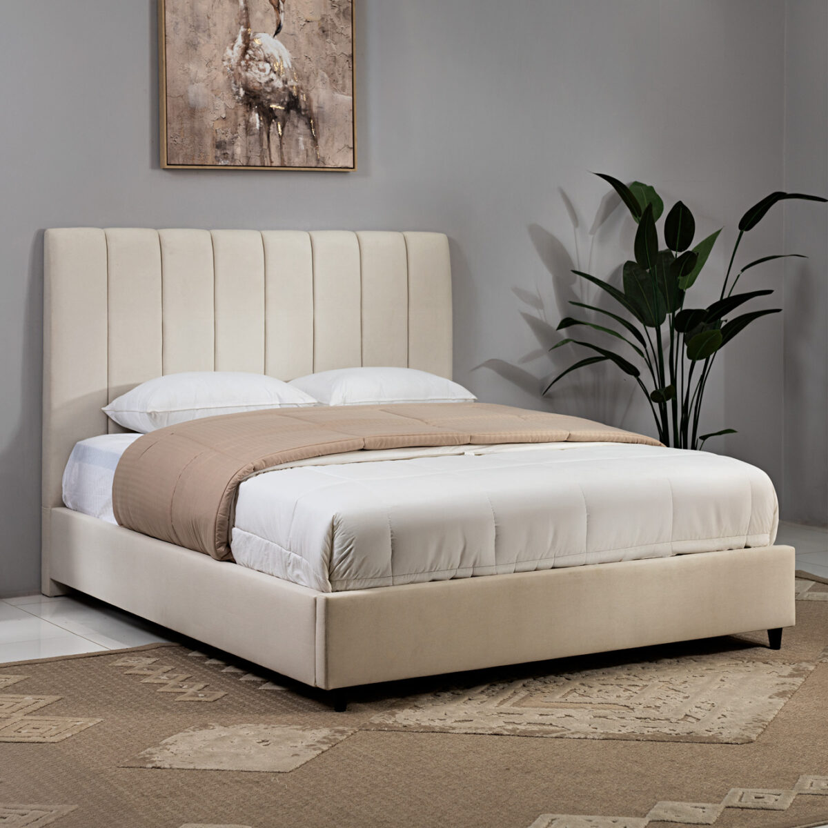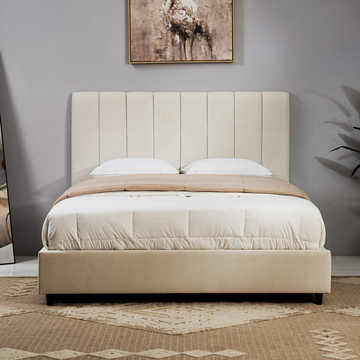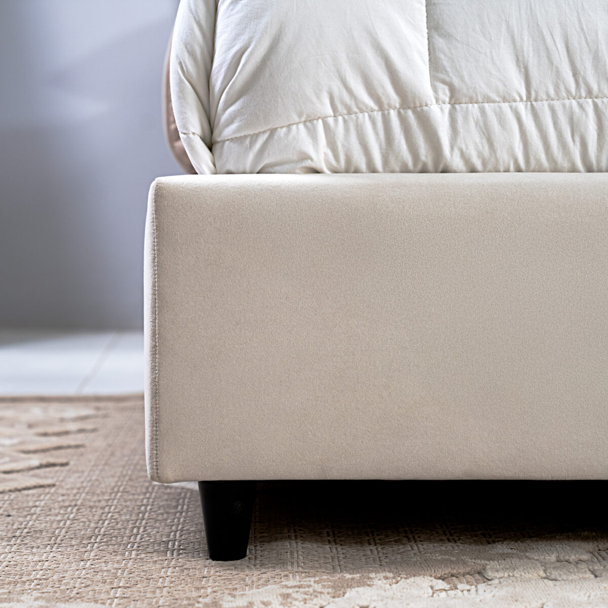 The Issac Bed combines luxury and comfort with its plush upholstered frame and sophisticated design, bringing effortless elegance to any bedroom.
