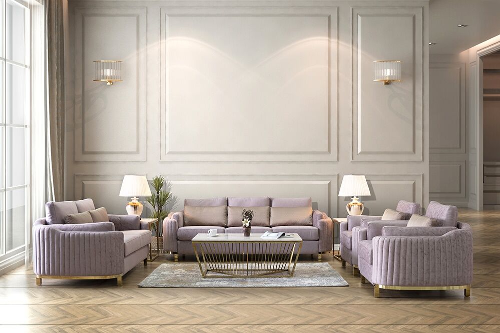 Introducing the exquisite 7-seater Kamil sofa set, this sofa set boasts a sturdy metal strip wooden leg, adding a contemporary flair while ensuring durability and stability.