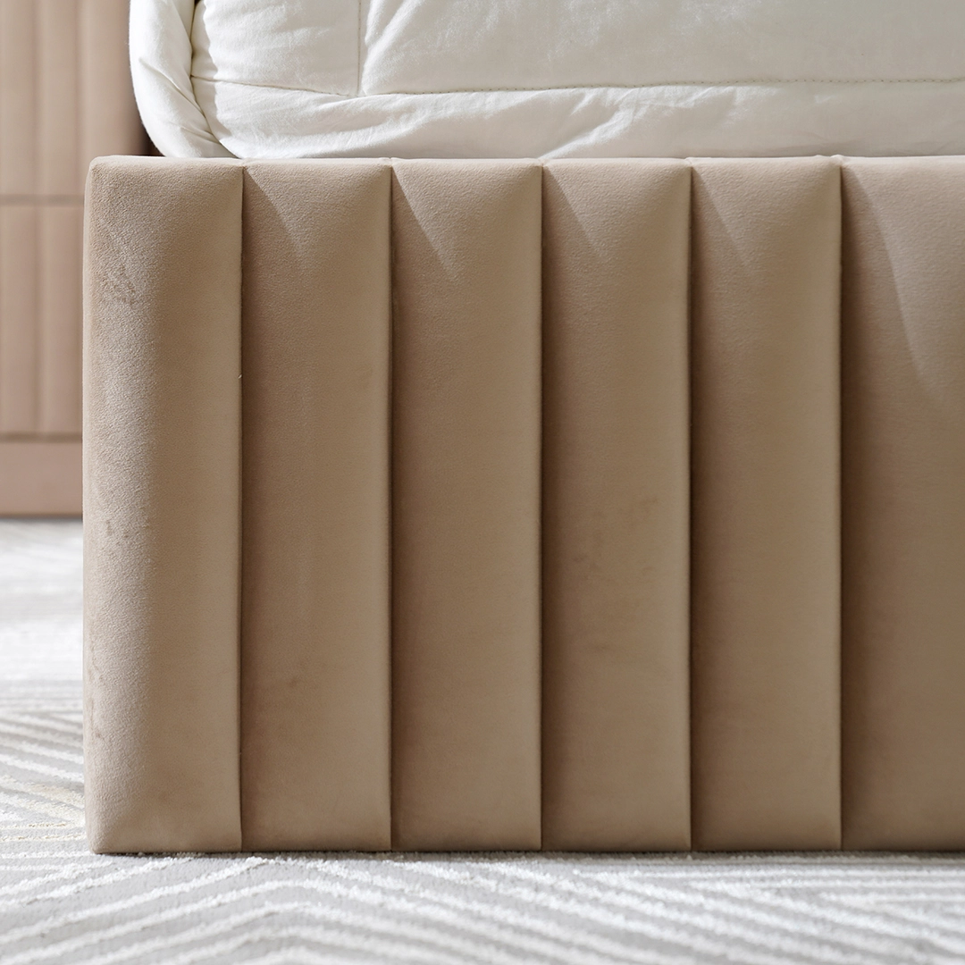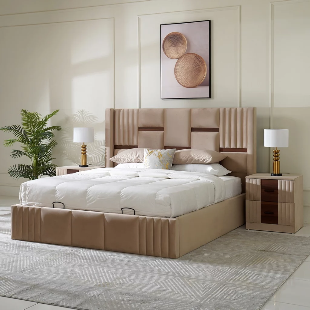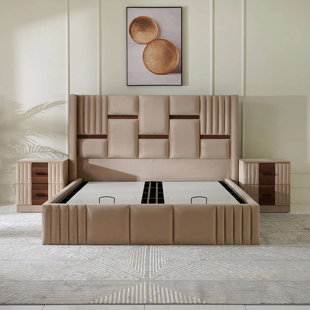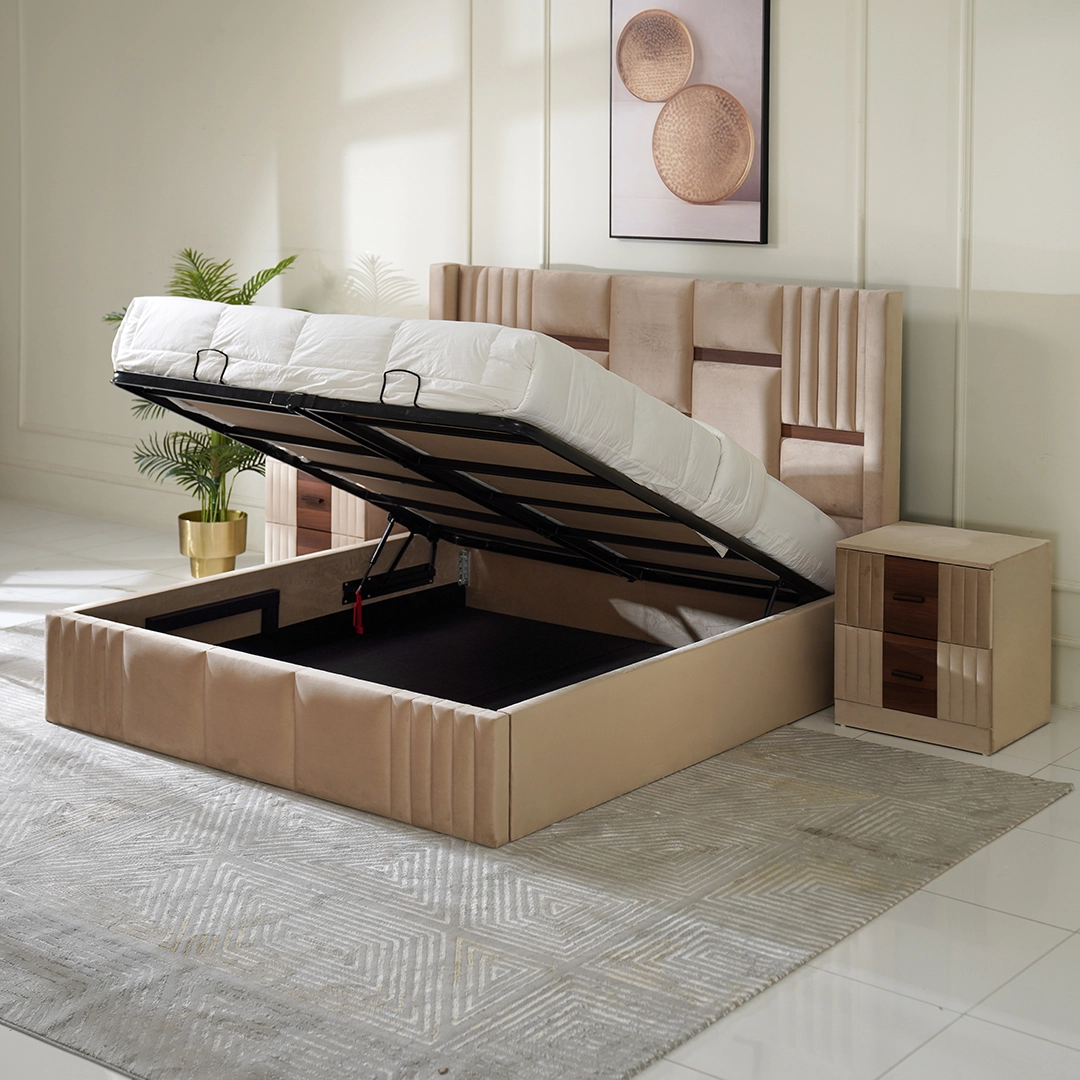 This Hydraulic Storage Bed Blends Elegance And Practicality With A Refined Upholstered Frame And Spacious Hidden Storage. Made To Order, It Allows You To Choose The Fabric And Color That Best Suit Your Style.