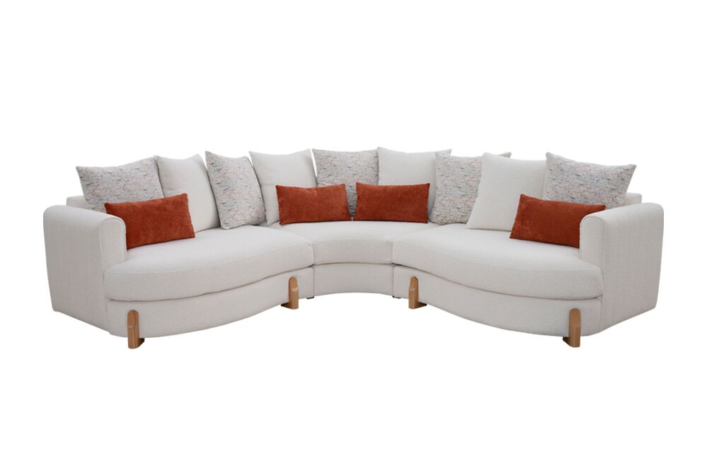 Introducing the Marlow Corner Sofa by Royal Furniture, This exquisite piece features a sophisticated wooden leg design and a unique removable seat feature, allowing you to customize your seating arrangement to suit your needs.