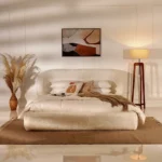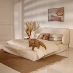 The Omega Bed combines luxury and comfort with its plush upholstered frame and sophisticated design, bringing effortless elegance to any bedroom.