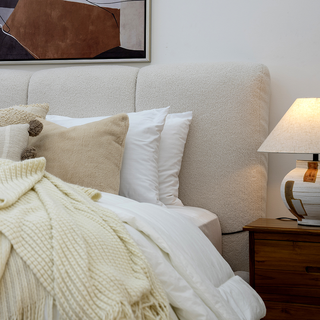 Available in a range of sizes to suit your space, the Oscar bed allows you to customize your sleeping experience according to your needs. Additionally, with a variety of fabric colors to choose from, you can personalize your bed to perfectly complement your bedroom decor.