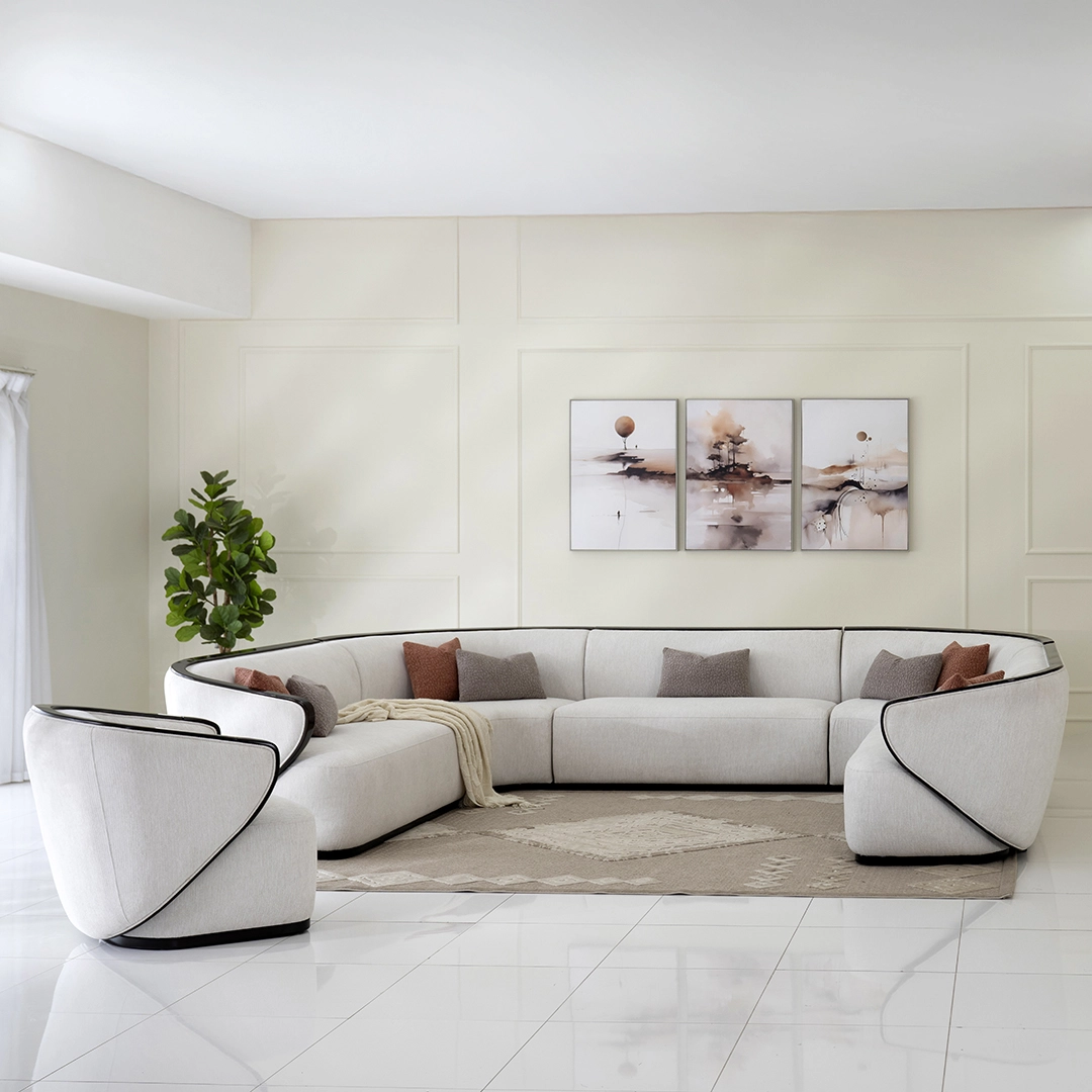 The Rayan Corner Sofa exudes luxury and style, offering a refined design with spacious seating for unmatched comfort and elegance. Its contemporary charm makes it a captivating centerpiece in any sophisticated living space.