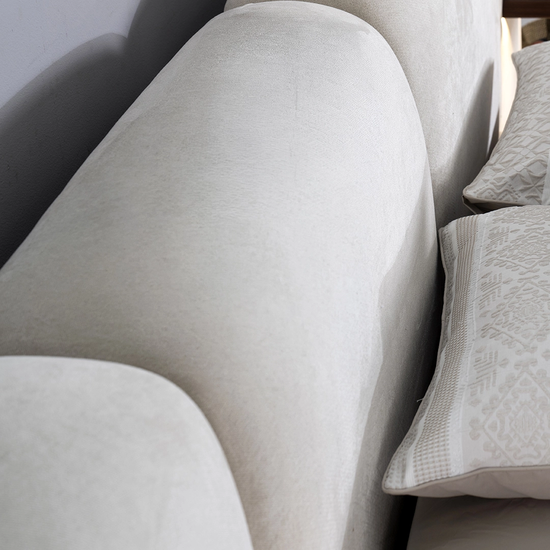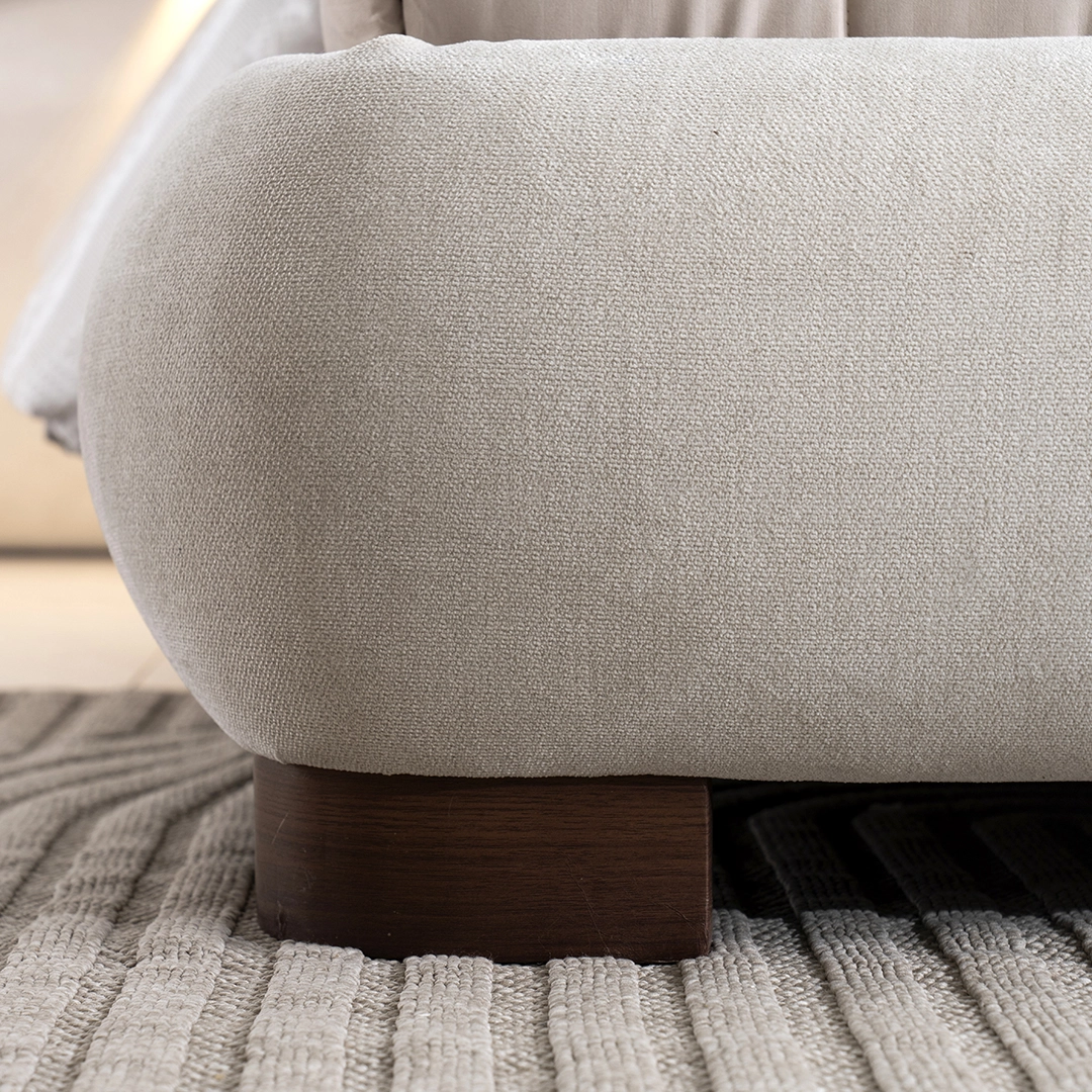 The Rochester Bed blends comfort and elegance, featuring a soft upholstered frame and a refined design that enhances any bedroom with a touch of sophistication.