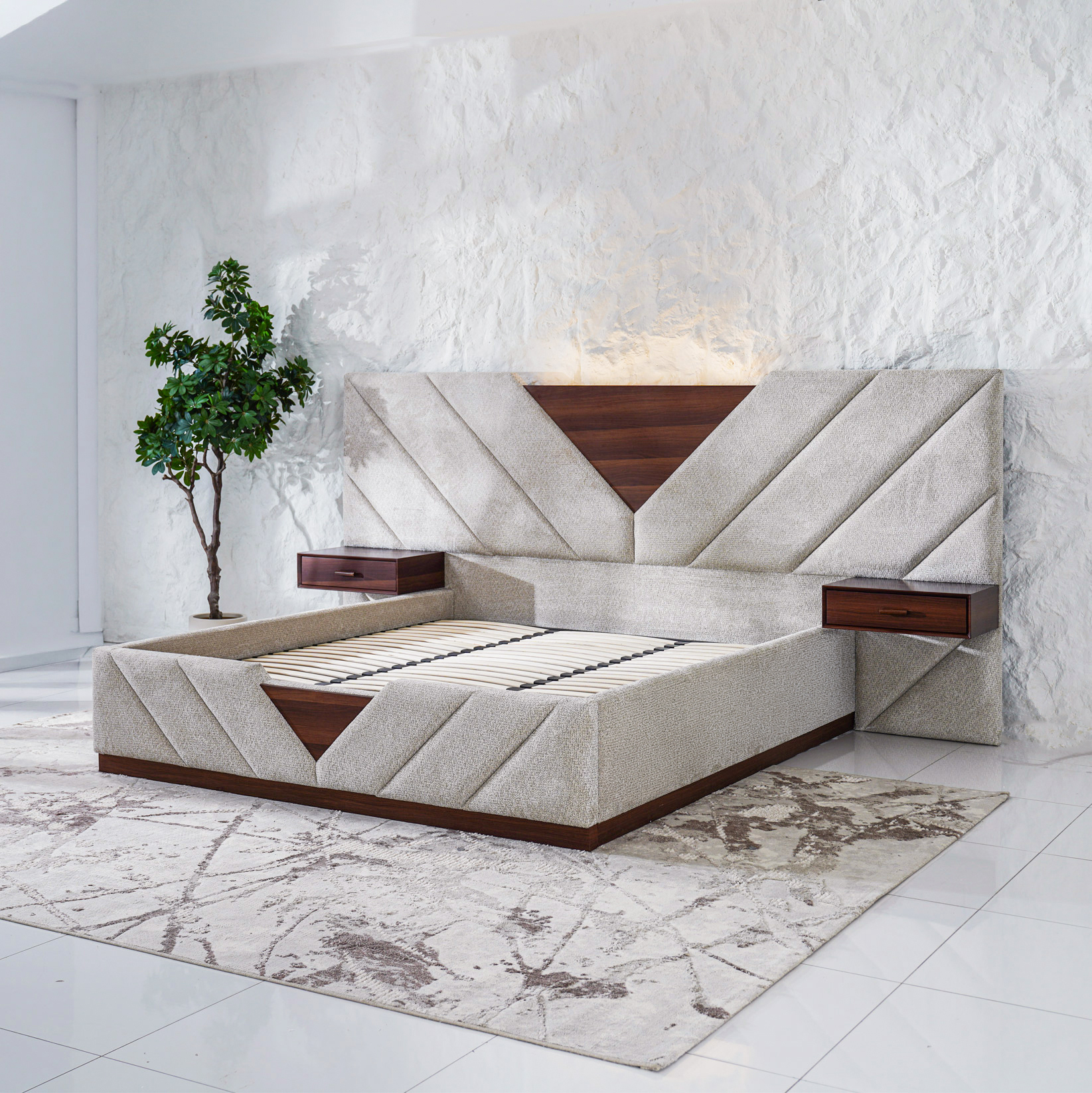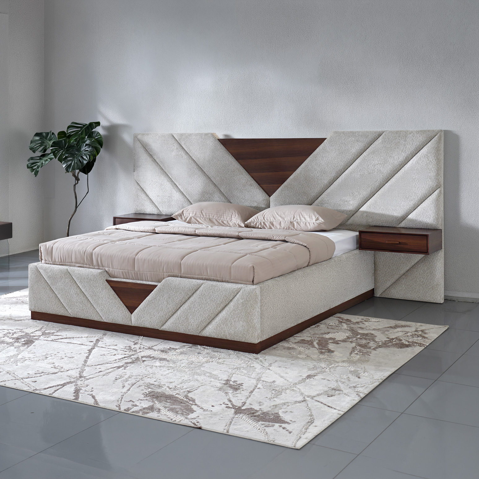 | Headboard Style | Fully Upholstered With Side Tables |