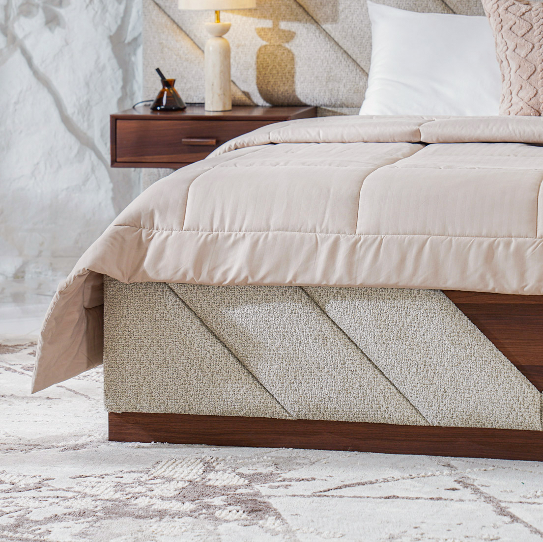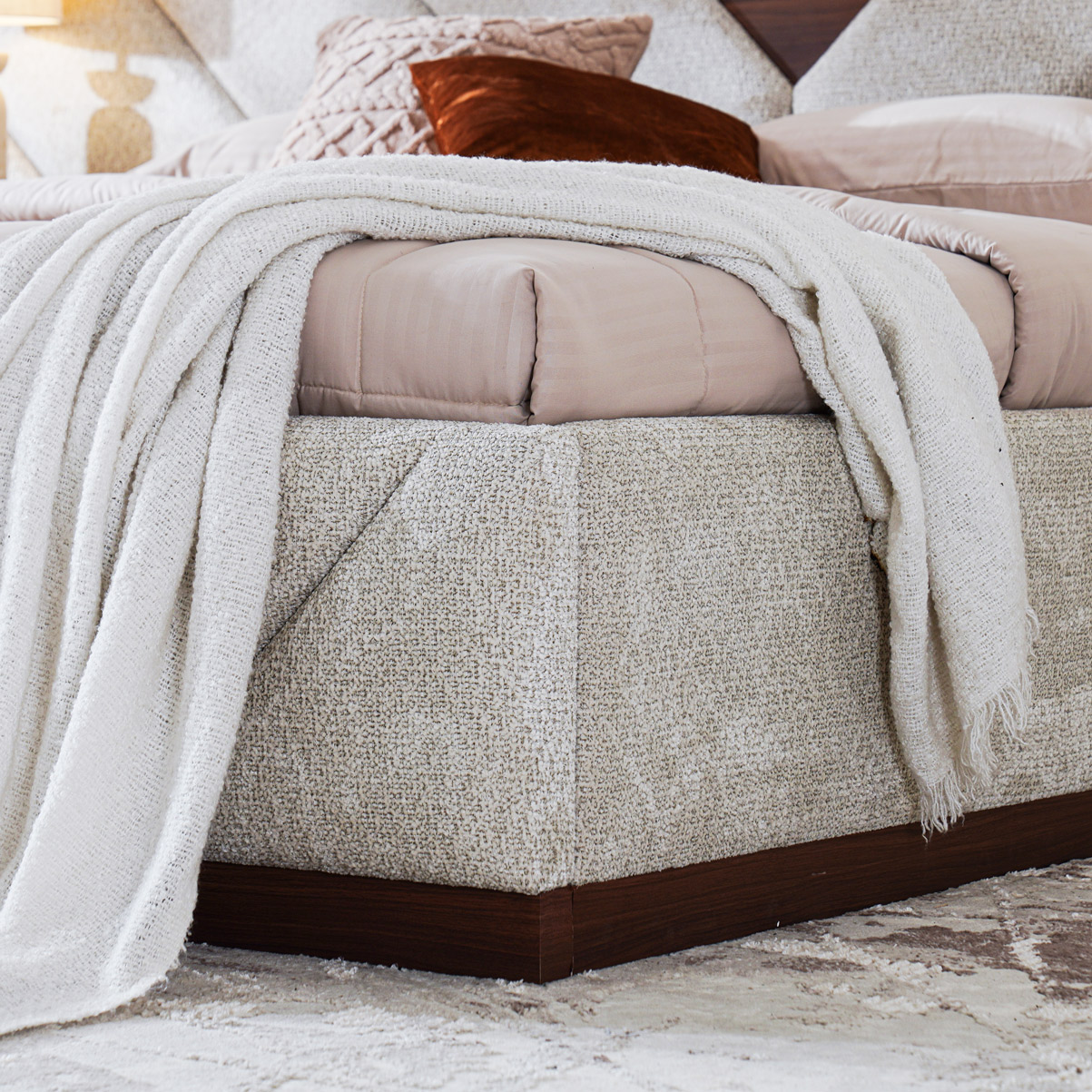 The Western Bed blends comfort and elegance, featuring a soft upholstered frame and a refined design that enhances any bedroom with a touch of sophistication.