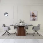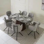 The tremont dining set 1+6 features a refined Grey and walnut finish, offering a perfect balance of style and function. Designed to comfortably seat six, it brings elegance and warmth to any dining space.