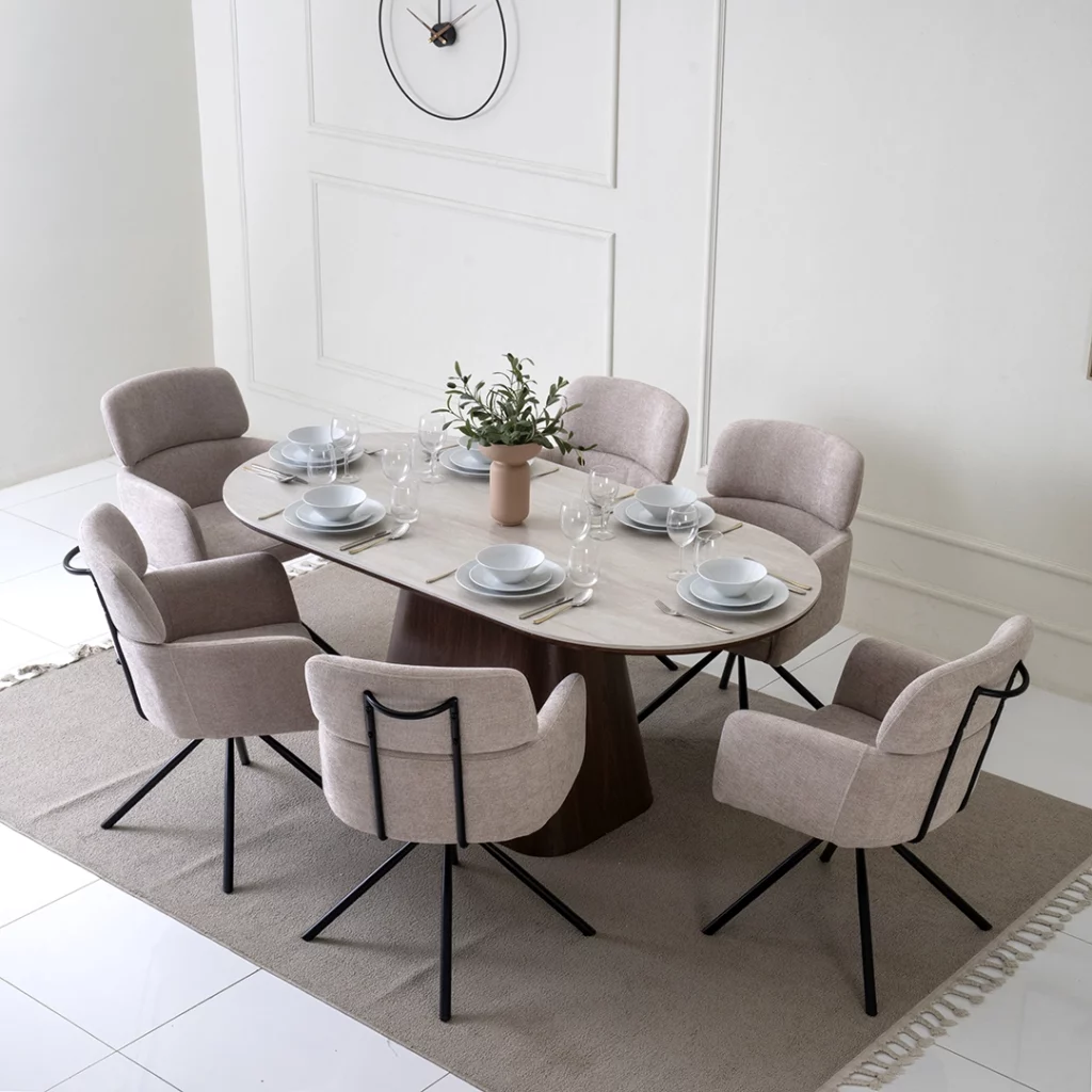 | Set Includes | 1 Dining Table + 6 chairs |