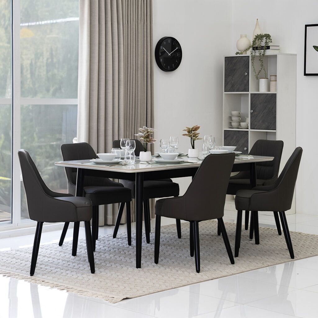 A standout feature of the Treviso dining table is the special induction top, perfect for keeping dishes warm during meals, adding convenience to its luxurious design. The entire set is highlighted with a contemporary grey color, blending seamlessly into modern interiors while exuding a sense of understated elegance.