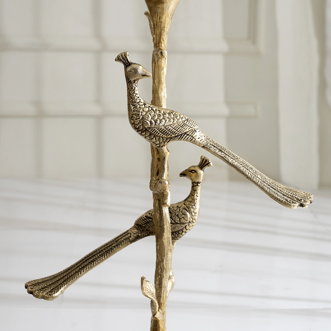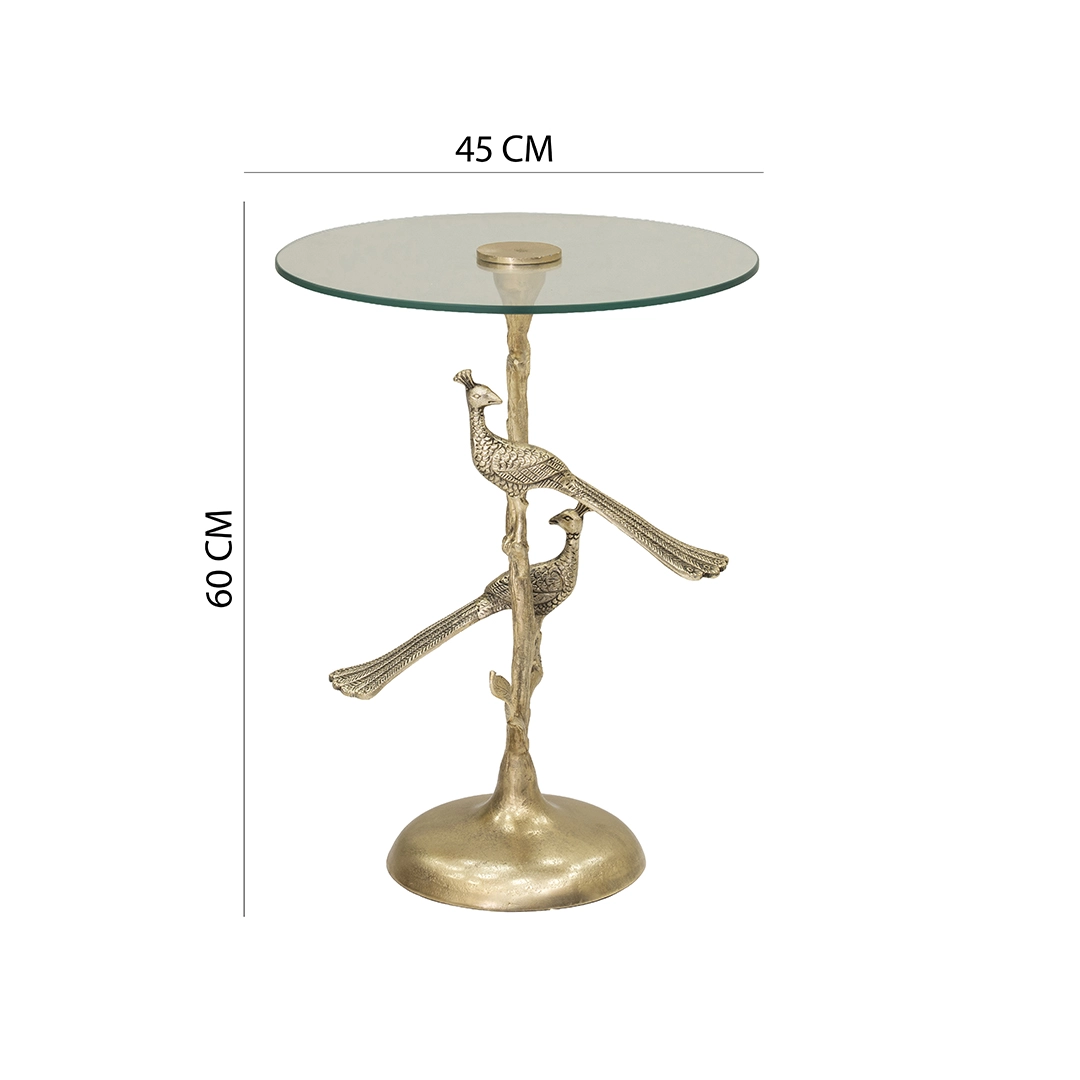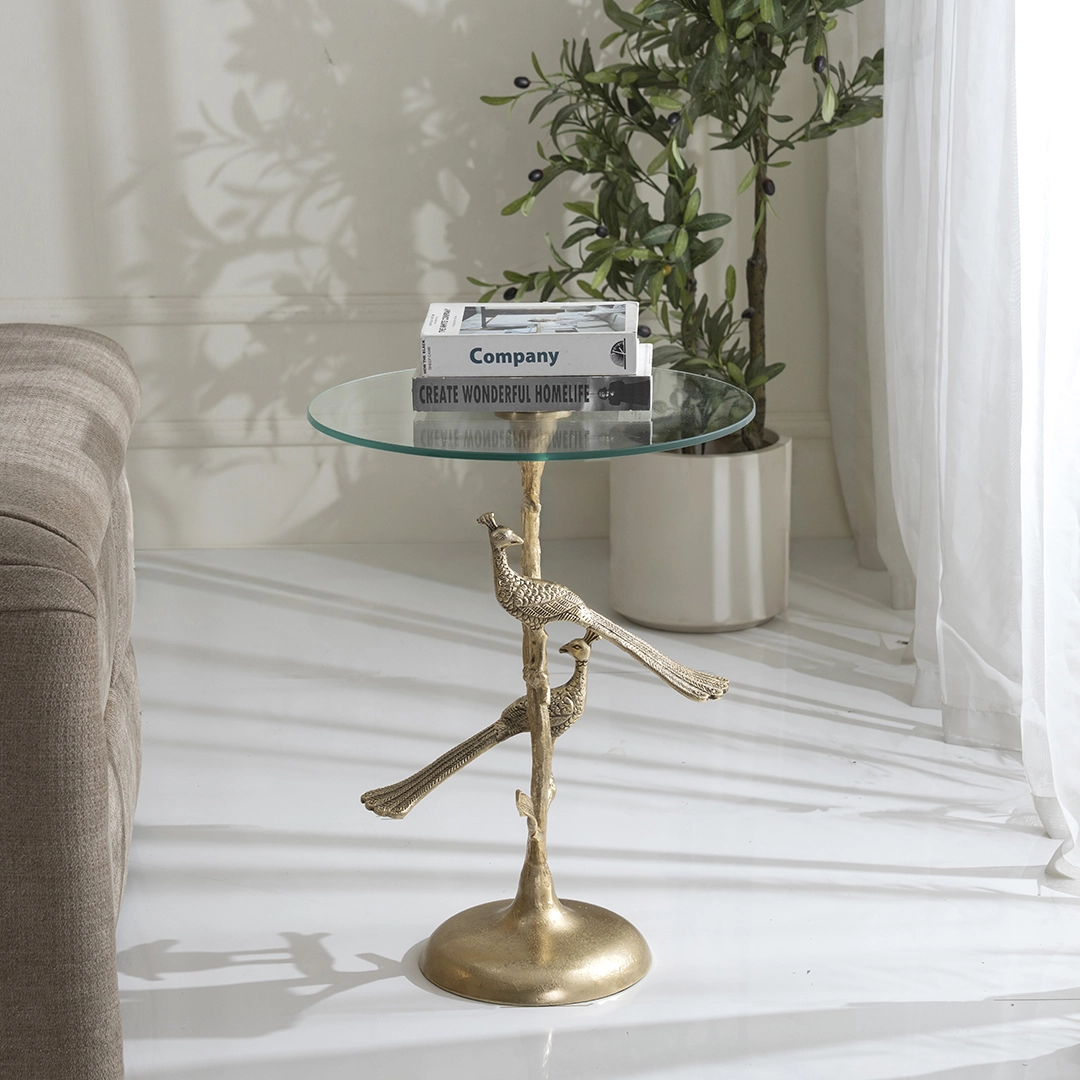The Twin Peacock Accent Table with a Glass Top is a chic and modern piece that combines contemporary style with a touch of luxury.