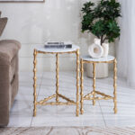 The Urban Nesting Tables with a marble top and gold color is a stylish and functional piece of furniture, perfect for adding a touch of elegance and luxury to any room.