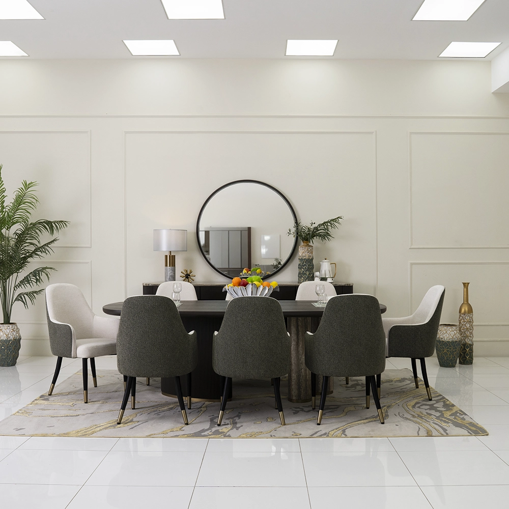 Set Includes | 1 Dining Table + 8 Chairs + Buffet with Mirror |