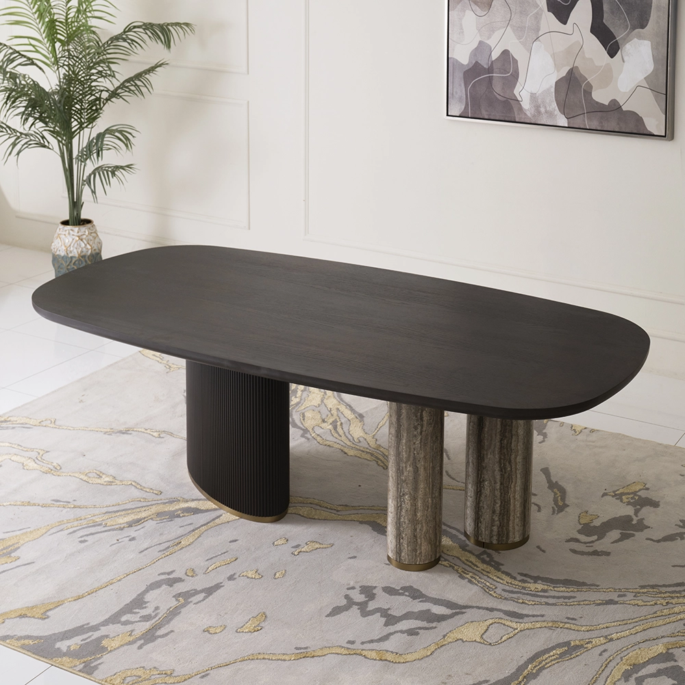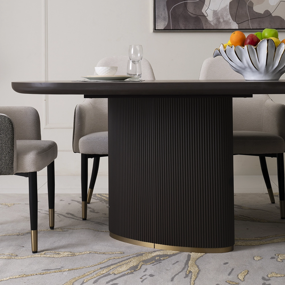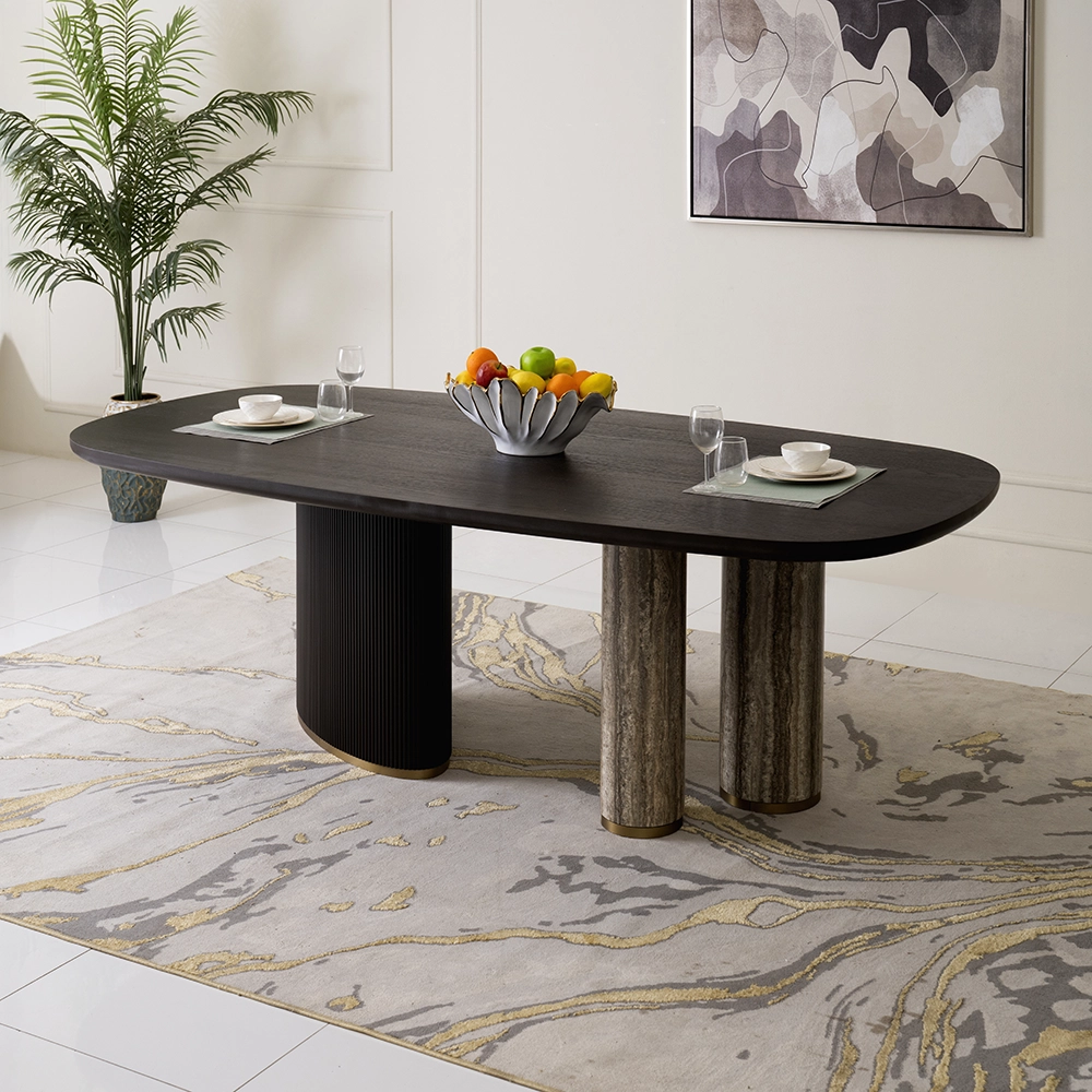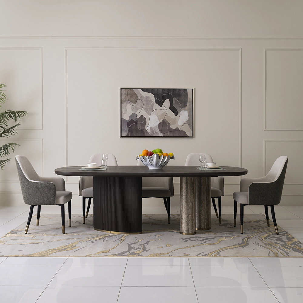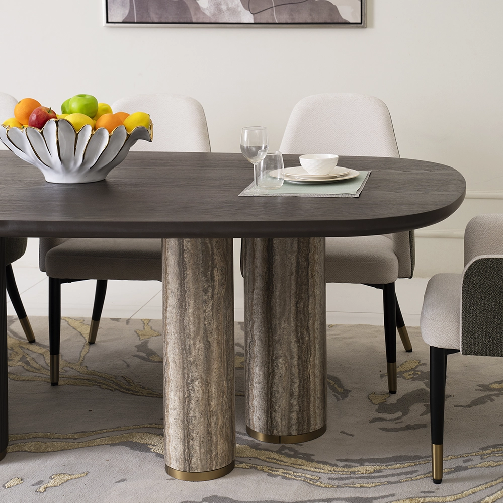 The spacious dining table comfortably seats ten people, making it ideal for large family gatherings, dinner parties, and festive occasions. The ample seating capacity ensures everyone has a place at the table.