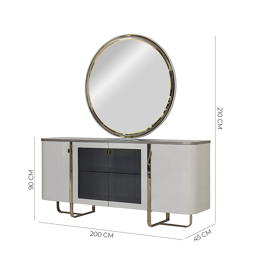 | Set Includes | 1 Dining Table + 10 chairs +Buffet with Mirror + Wine Cabinet |